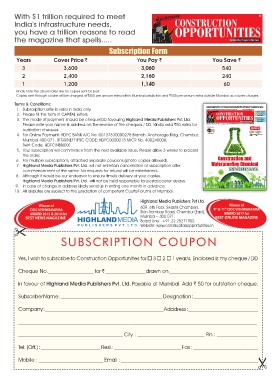 Yes, I wish to subscribe to Construction Opportunities for 3 2 1 year/s. Enclosed is my cheque / DD
