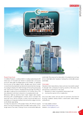 was 1700 tonnes; however, using tubular technology, APL APOLLO revolutionise construction in two ways,