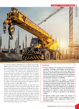 growth. The mobile crane is anticipated to garner the highest increasing the production capabilities.