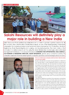 management techniques. In an exclusive interview to CONSTRUCTION OPPORTUNITIES, RIJUL SANKHLA,