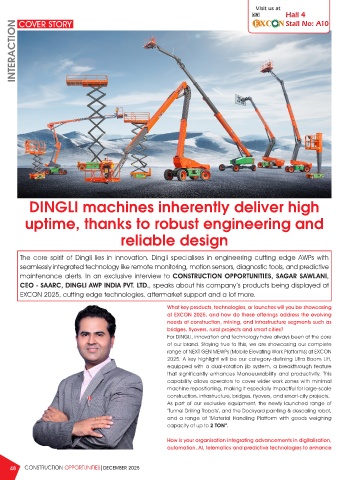 maintenance alerts. In an exclusive interview to CONSTRUCTION OPPORTUNITIES, SAGAR SAWLANI,