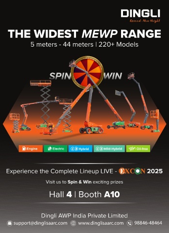 THE WIDEST MEWP RANGE 5 meters - 44 meters | 220+ Models Experience the Complete Lineup LIVE - 2025 Visit us to Spin & Win exciting prizes Hall 4 | Booth A10 Dingli AWP India Private Limited support@dinglisaarc.com www.dinglisaarc.com 98846-48464