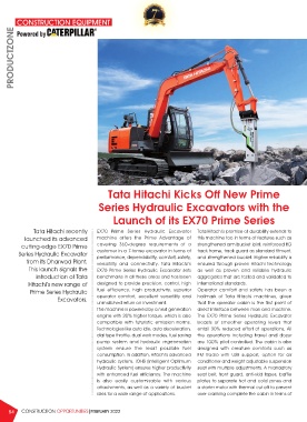 This launch signals the EX70 Prime Series Hydraulic Excavator sets as well as proven and reliable hydraulic