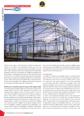 manufacturing, logistics, and e-commerce sectors. Growth in the PEB consume less time and require less maintenance. Such
