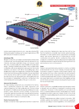 centers, supermarkets, showrooms, etc., have also attracted PEB. onsite construction. Prefabrication takes less than half the time