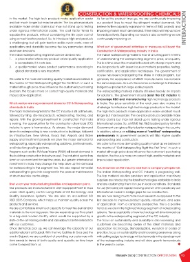 industry to grow is tremendous. As always, the major demand Government can give a fillip to better waterproofing in the country.