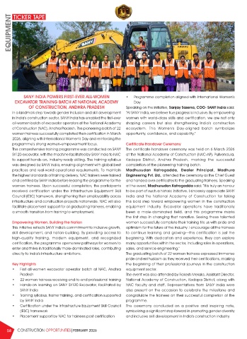 • First all-women excavator operator batch at NAC, Andhra equipment sector.
