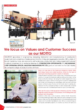 & global consumers. In an exclusive interview to CONSTRUCTION OPPORTUNITIES, P L MUTHUSEKKAR,