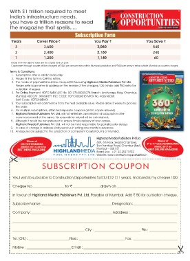 1. Subscription offer is valid in India only. RNI No. MAHENG/2014/56033. Date of Publication 5 th of every month. www.constructionopportunities.in Special Issue