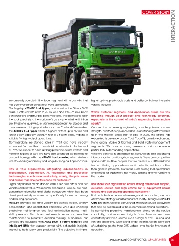 on-road haulage with the 470eTR tractor-trailer, which delivers into construction and long-haul segments. These are competitive