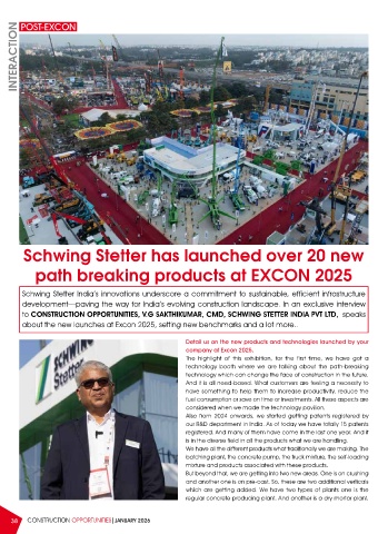 to CONSTRUCTION OPPORTUNITIES, V.G SAKTHIKUMAR, CMD, SCHWING STETTER INDIA PVT LTD, speaks