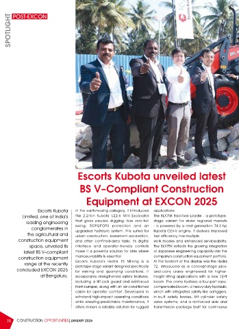 Escorts Kubota In the earthmoving category, it introduced applications
