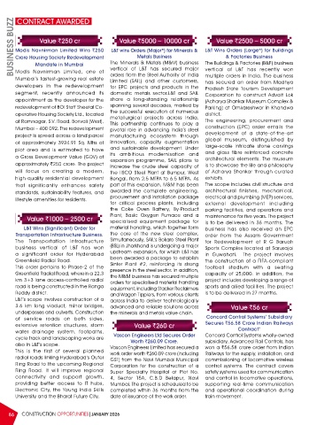 BUSINESS BUZZ Modis Navnirman Limited Wins `250 The Minerals & Metals (M&M) business L&T Wins Orders (Large*) for Buildings