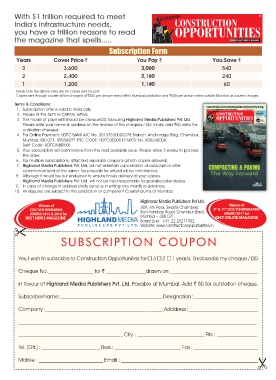 Please write your name & address on the reverse of the cheques / DD. Kindly add `50 extra for MARCH 2022 Vol.9 No.2 `100 Winner of 9 th &11 th CIDC VISHWAKARMA AWARD 2017 & 2019 for BEST ONLINE MAGAZINE 19-21 Sep | Mumbai