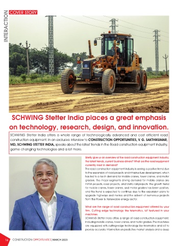 construction equipment. In an exclusive interview to CONSTRUCTION OPPORTUNITIES, V. G. SAKTHIKUMAR,