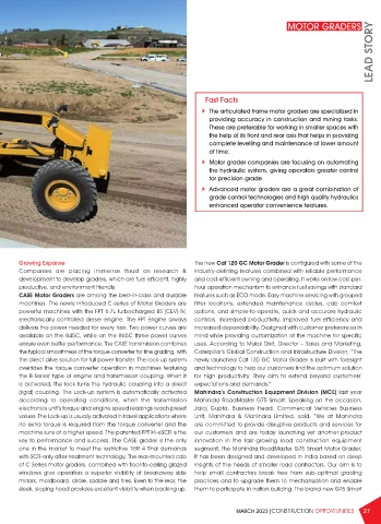 machines. The newly introduced C-series of Motor Graders are filter locations, extended maintenance cycles, cab comfort