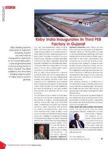 India (part of Alghanim (PEB) manufacturing plant furthers Kirby’s story is one we are very proud of at Alghanim