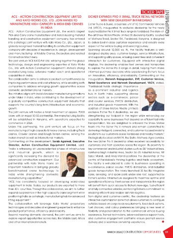 MANUFACTURE HIGH CAPACITY & HIGH-END CRANES Eicher Trucks & Buses, a business unit of VE Commercial Vehicles EQUIPMENT