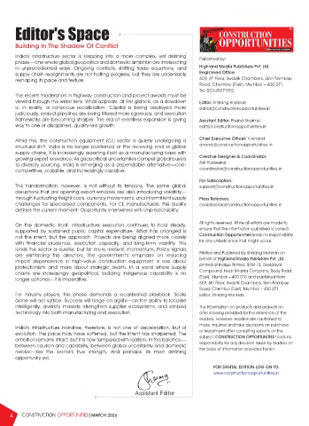 way to one of disciplined, quality-led growth. edit@constructionopportunities.in
