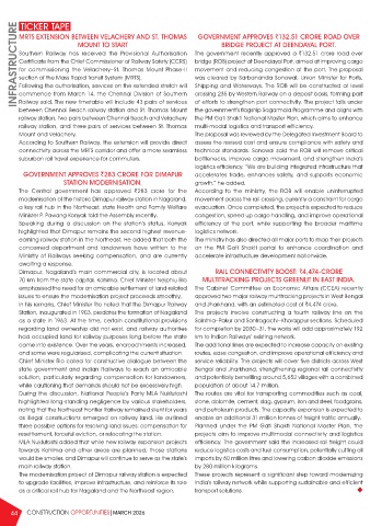INFRASTRUCTURE MRTS EXTENSION BETWEEN VELACHERY AND ST. THOMAS The government recently approved a `132.51 crore road over
