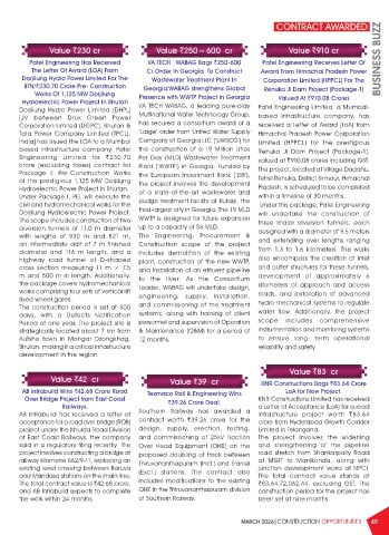 Engineering Limited for `230.70 Per Day (MLD) Wastewater Treatment valued at `910.08 crores including GST.