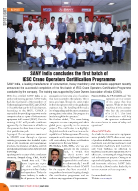 IESC has certified SANY India as an six months we have seen a lot of accidents Naveen Dedhia, Sr. VP, COAOI said, “ e