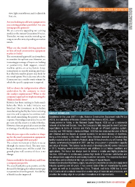 response. Our indigenisation level is over 40 (KCEI), is a subsidiary of Kobelco Construction Machinery (KCM), Japan.