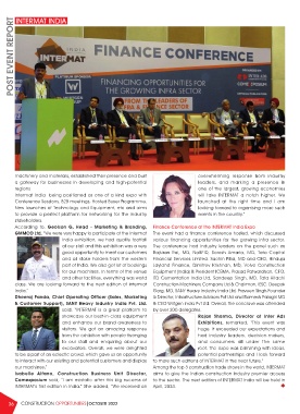 According to, Geolson G, Head - Marketing & Branding, Finance Conference at the INTERMAT India Expo