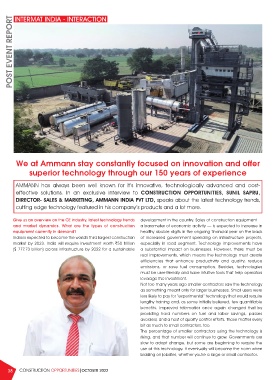 DIRECTOR- SALES & MARKETING, AMMANN INDIA PVT LTD, speaks about the latest technology trends,