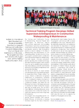 2022, at IITD’s Training concrete repairs, concrete protection, waterproofing and repairs and maintenance