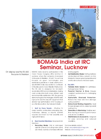 On display was the RS 460 BOMAG India recently participated in the binding agents.