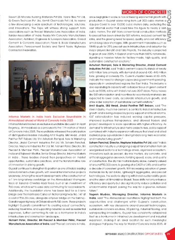 India and Rajneesh Khattar, Senior Group Director, Informa Markets Innovations such as precast, dry mix mortars, dry concrete, and