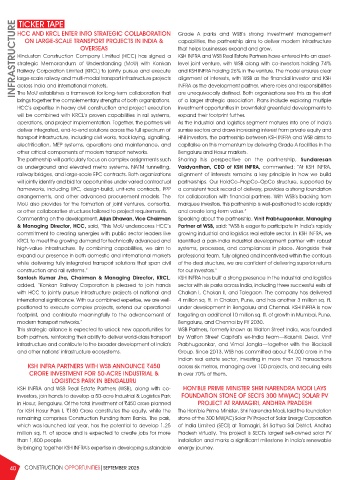 INFRASTRUCTURE HCC AND KRCL ENTER INTO STRATEGIC COLLABORATION Grade A parks and WSB’s strong investment management