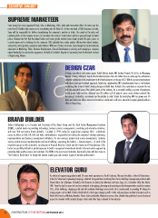 ExEcutivE connEct SUPREME MARKETEER Sanu George has been appointed Head, Sales & Marketing, SDLG, India with immediate effect. He takes over the reins from B Shridhar who moves on to a marketing role for Volvo CE. As the new head of SDLG business in India, Sanu will be responsible for further strengthening the company’s position in India. His arrival at the sales and marketing helm of the company comes at a time when the country’s construction industry is going through its lowest phase. However the fact that the wheel loader and motor grader markets have shown growth this year comes as a good augury and a challenge for the company. SDLG globally has a wide product offering from wheel loaders, compactors, motor graders, excavators and backhoes. With over 24 years of service, Sanu George has varied extensive experience in Marketing, Sales, Business Development, Channel Development, sourcing and managing a company owned dealership for construction equipment. He holds a Bachelor's Degree in Engineering from the National institute of Engineering, Mysore. DESIGN CZAR A design consultant and interior expert, Ashok Kularia heads ANJ Turnkey Projects Pvt Ltd as its Managing Director. Having imbibed a love for the furniture business from his father from an early age his enthusiasm naturally culminated in his involvement in the family business at the age of 22. With his personal involvement with clients and eye-for-detail approach, Ashok has spearheaded ANJ’s transformation from a civil interior contracting firm to one of India’s leading design and build firms. Kularia’s firm specialises in corporate fit-outs and competes with some of the global giants of the industry. He is currently handling a gamut of prestigious clients across India and has delivered over 50 million sq ft of projects’ space across distinct verticals like commercial, residential, recreational and hospitality to retail. Under his leadership ANJ has grown over 50 times and today has offices across four locations in India and is all set to extend its footprint globally with an office in Hong Kong. BRAND BUILDER Rohan Bulchandani is Co-Founder and President of The Annet Group and The Real Estate Management Institute (REMI), a global leader in providing technology, business process management, consulting and education solutions, with over 300 real estate clients globally. Founded in 1998, today his organisation employs 500+ individuals across its offices in USA, UK, UAE and India. Bulchandani is responsible for leading the company’s strategic planning, implementation and business development initiatives. He also oversees product and service development, customer service, quality process implementation and team building, supporting the leaders – domain experts – of each of the respective groups in their initiatives. An alumnus of Harvard Business School and the University of Pennsylvania, USA, he has successfully utilised his global exposure to build a recognised international brand in the real estate segment by providing high quality services and solutions. The REMI is the most recent initiative launched by him with the vision to ‘Skill India to Build India’ to bridge the human capital gap and increase supply of trained professionals. ELEVATOR GURU An electrical engineering graduate with 20 years work experience in the lift industry, Dhimant Unadkat, is Head of Operations- India, for Soberman Engineering Company, a Vertical Transportation Consulting firm. He has held key management positions with Bharat Bijlee Ltd. (Olympus-Schindler), Otis Elevators Co (India) Ltd, Mumbai and Ojaco Engg. LLC, (Schindler Lifts) Abu Dhabi, UAE. From the last ten years he has been involved in designing, planning and executing vertical transportation needs for various SEZs, office buildings, shopping malls and tall residential buildings across India. He is instrumental in providing VT design for mega projects such as Mall of India, Noida which is the largest shopping mall in India and prestigious residential projects such as New Cuffe Parade at Wadala, Mumbai, Planet Godrej at Byculla, Mumbai to name a few. Unadkat has published several technical papers for elevator traffic analysis design criteria and other topics relevant to the industry. 74 construction opportunities|sEPTEMBER 2015