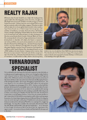 NEWBREAKERS REALTY RAJAH Billionaire Ajay Piramal should be on a high with leading private equity bellwethers showing faith in his real estate enterprise. If Warburg Pincus announced a `1800 crore stake purchase in Piramal Realty last month, Goldman Sachs has now invested `960 crore to pick up a minority stake in the Indian company. What the two deals will certainly do is to boost global faith in India’s realty markets. Ajay Piramal heads one of India's largest business groups, with activities in healthcare, real estate, fnancial services, information services, and glass packaging. Piramal Realty has about 10 million sq f of commercial and residential projects under development in Mumbai, across Bandra Kurla Complex, Mulund, Worli and Tane. Te company which is focused on large residential and mixed-use developments in Mumbai will deploy the funds to expand its real estate portfolio and acquire prime properties in and around Mumbai. Piramal Fund Management, a Piramal Group company, lends to real estate developers through debt and equity. Last year, the group’s fagship company, Piramal Enterprises, had entered into an alliance with Canada Pension Plan Investment Board to set up a $500-million real estate fnance company in the country. Ajay is the recent vote of confdence from Wall Street investment majors. Piramal recently received the Business Leader (Indian company in Tat should make the Harvard alumni happy. His company which the U.S.) of the Year, 2015 award by the Indo-American Chamber aspires to be the most respected real estate developer in India seems of Commerce. To add to that accolade, which is one among many to be heading in the right direction. TURNAROUND SPECIALIST Tis could well be the last hope of revival yet for national carrier, Air India, as a railways man is being brought into the hot seat to bring the airline back on track. Ashwani Lohani, an Indian Railways Service of Mechanical Engineers ofcer of the 1980 batch, has been directed by the appointments committee of the Union cabinet to take over as the next Chairman and Managing Director of the beleaguered airline. Te 57 year old engineer-turned-bureaucrat – his name fgures in the Limca Book of Records' 2007 edition for earning four engineering degrees at a young age of 21 in 1979 – has been credited with the dramatic turnaround of various public sector units like the Indian Tourism Development Corporation (ITDC), where he was credited with turning around New Delhi's Ashoka Hotel by making it proftable following years of losses, and reviving the Madhya Pradesh State Tourism Development Corporation as its Managing Director. Lohani has also earned mention in the Guiness Book Of Records for restoring the world's oldest working steam locomotive, the Fairy Queen Express between Delhi and Alwar. Reviving the state-run carrier sitting on a debt pile of `50,000 crore and whose combined losses currently stand at a whopping `30,000 crore, is going to be a staggering job though. For man who considers the motorcycle advertisement where the rider blends with his bike as his greatest inspiration – as an extension of that thought he believes a CEO must blend with his organisation like sugar in water – it remains to be seen how he will deal with the bumpy road in the skies. 78 construction opportunities|sEPTEMBER 2015