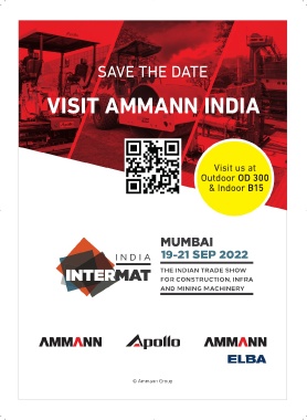 SAVE THE DATE VISIT AMMANN INDIA Visit us at Outdoor OD 300 & Indoor B15 19-21 SEP 2022 THE INDIAN TRADE SHOW FOR CONSTRUCTION, INFRA AND MINING MACHINERY © Ammann Group